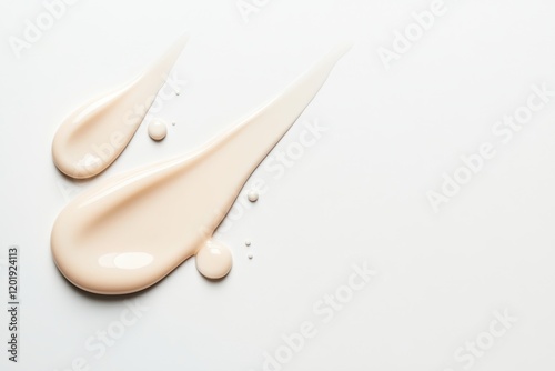 Elegant drop of bb cream glistens on pristine white background with playful highlights