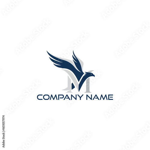 Elegant eagle flying over letter m logo isolated on white background