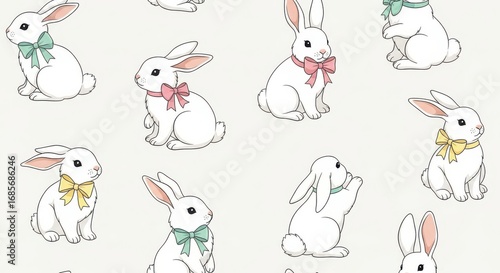 Elegant Easter: A Seamless Pattern of Whimsical Bunnies with Pastel Bows Design