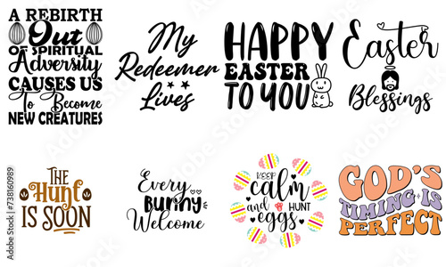 Elegant Easter Day Typographic Emblems Set Vector Illustration for Printable, Wrapping Paper, Poster