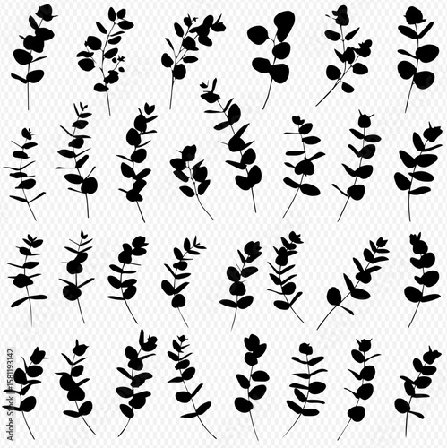 Elegant Eucalyptus Silhouettes A Collection of Botanical Shapes for Design