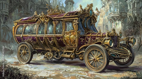 Elegant Fantasy Vehicle with Ornate Design in Enchanted Setting