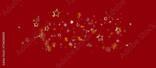 Elegant festive background with golden stars and snowflakes on a rich red backdrop. Perfect for Christmas, holidays, celebrations, and winter th