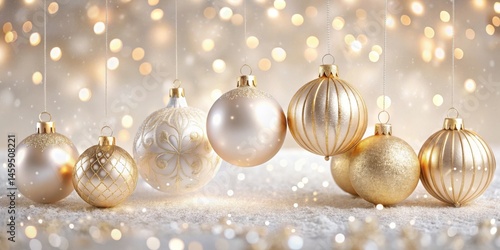 Elegant Festive Ornaments Hanging Against a Sparkling Background