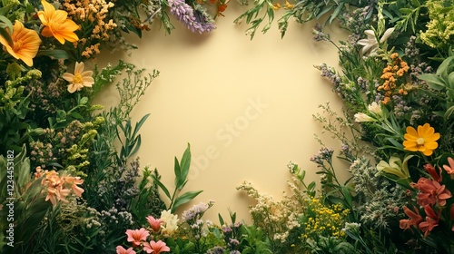 Elegant Floral Arrangement with Bright Flowers and Blank Paper for Creative Layout and Design Ideas