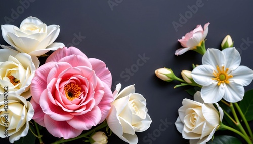 Elegant Floral Arrangement with Pink and White Roses on Dark Background