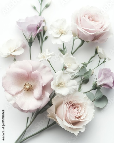 Elegant Floral Corner Arrangement with Blush Pink Roses and Delicate Eustoma Blooms Perfect for Wedding Stationery