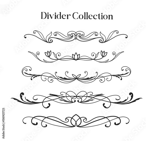 Elegant floral dividers in black outline, perfect for adding a decorative touch to invitations, wedding designs, and digital scrapbooking. Includes various botanical and vintage-inspired divider style