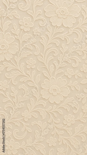 Elegant floral embossed beige mobile wallpaper
