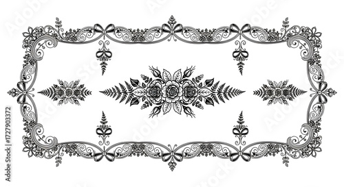 Elegant floral frame with roses and ferns for invitation design or romantic decoration project, ornate botanical pattern