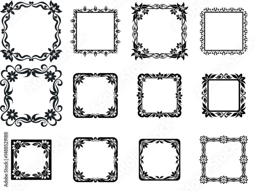 Elegant floral frames for decorative design project ideas vector silhouettes