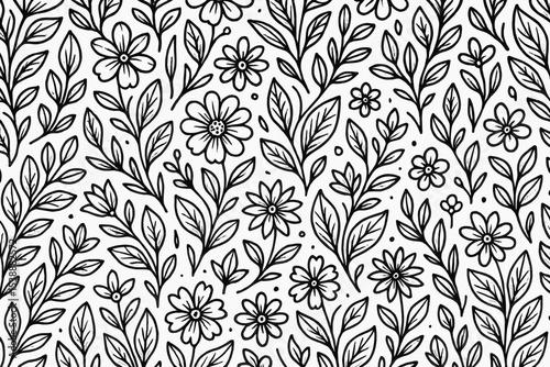 Elegant Floral Leaves Seamless Pattern Black and White Botanical Design