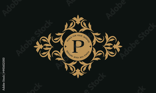 Elegant floral logo design template for one or two letters such as letter P. Calligraphic exquisite ornament. Business sign, monogram identity for restaurant, boutique, hotel, heraldic, jewelry.