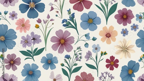 Elegant Floral Pattern: A Delightful Tapestry of Pastel Blooms