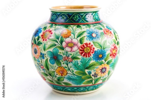 Elegant floral pattern graces a white ceramic vase, beautifully isolated in a still life study.