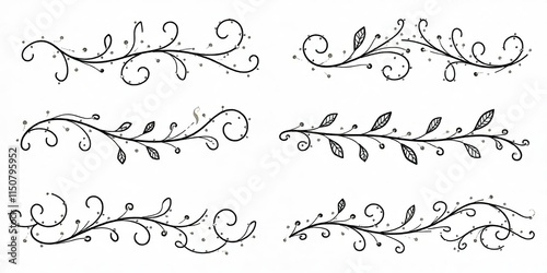 Elegant Floral Swirls Vines Hand Drawn Design Elements