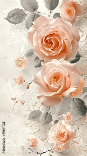 Elegant Floral Wedding Frame with Roses and Lace on Soft White Background