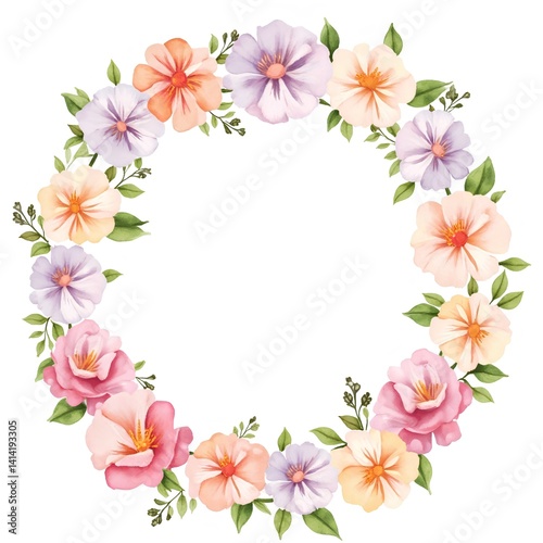 Elegant Floral Wreath with Colorful Flowers and Green Leaves