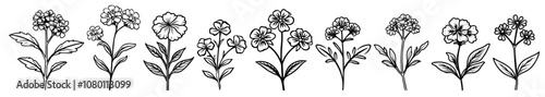 elegant flower sketches for botanical-themed designs – black vector