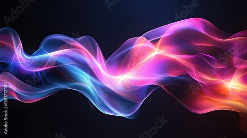 Elegant Flowing Fluorescent Light Wave on Dark Background