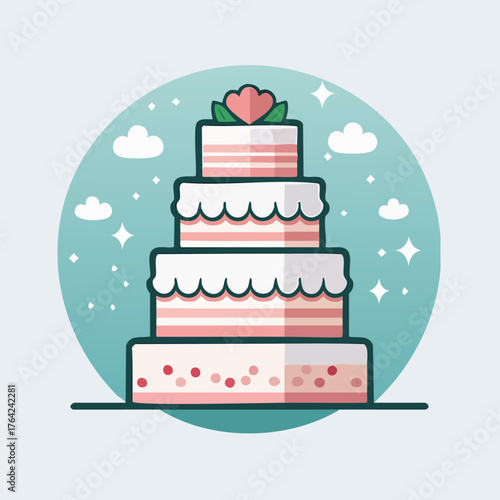 Elegant Four-Tiered Cake with Pink Accents and Floral Topper.