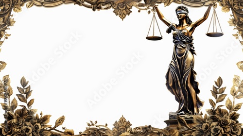 Elegant Frame Border Background Featuring Lady Justice Statue for Legal and Judicial Concepts