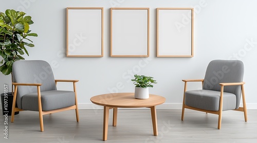 Elegant frame mockup in living room showcasing minimalist design and cozy ambiance