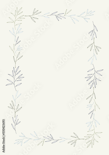 Elegant frame with leaves. Perfect for wedding invitations, postcards, decor, girl celebrations and more. A4 sheet proportion.