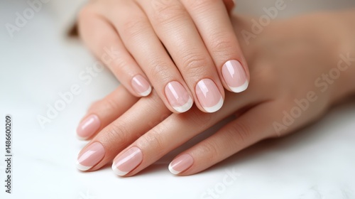 Elegant French Manicure on Woman's Hands Close Up Shot Perfect Nail Care and Beauty Treatment