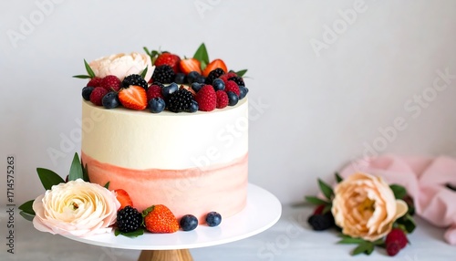 Elegant fruit cake on stand