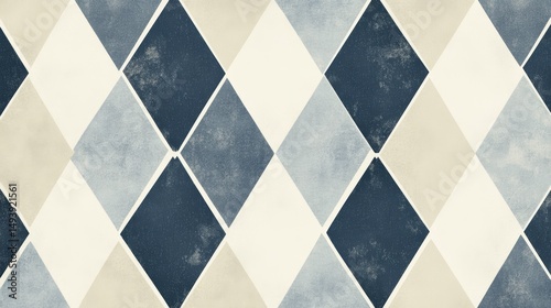 Elegant Geometric Pattern with Diamond Shapes in Blue and Beige Tones