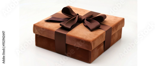 Elegant gift box with brown ribbon, symbolizing celebration and joy.