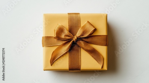 Elegant Gift Box with Brown Satin Ribbon on White Background