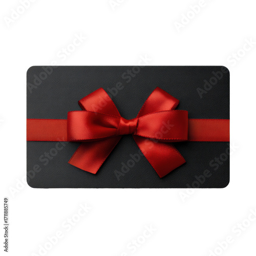Elegant gift card with red ribbon for special events on a transparent background, cut out