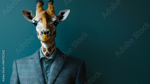 Elegant Giraffe Businessman in Tailored Suit Dignified Animal Hybrid Concept