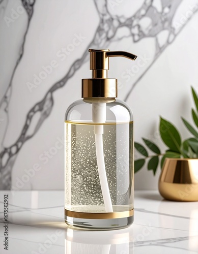 Elegant Glass Dispenser with Gold Accents on Marble Surface