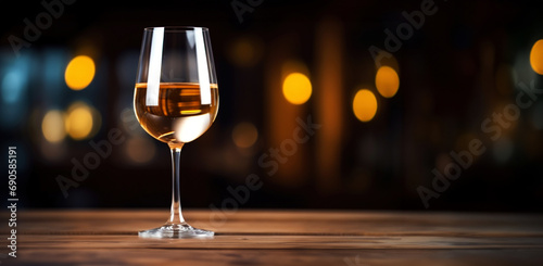 Elegant glass of white wine on blurred bar background. Wine industry concept. Generative AI