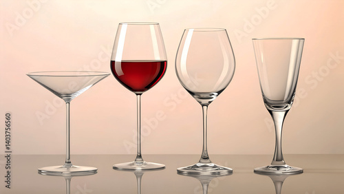 Elegant Glassware Showcase Martini, Wine, and Champagne Styles