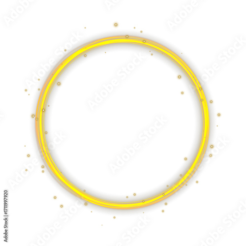 Elegant glowing golden round ring with shiny sparkles. Vector luminous circle with transparent background, glitter light border for modern decoration, luxury design, digital element, or festive celebr