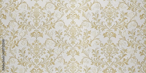 Elegant Gold and Off-White Damask Pattern Wallpaper Design for Interior Decoration