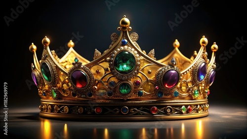 Elegant Gold Crown with Gemstones Silhouette Photography, Luxurious Royalty, Regal Accessories, Jewelry Art, Crown Silhouettes, opulent design, gemstone elegance, black background