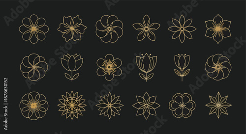 Elegant gold floral icons set on dark background, perfect for branding and design