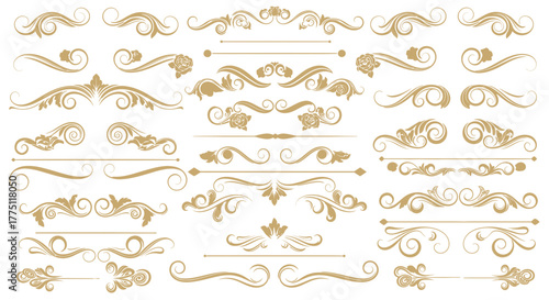 Elegant Gold Flourish Dividers & Ornamental Border Designs | Vintage Decorative Scroll Frames, Classic Victorian Luxury Line Art Elements