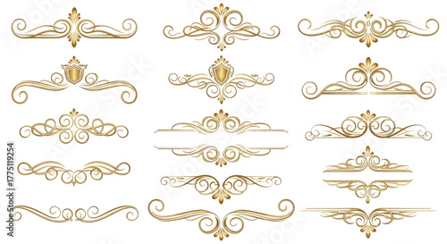 Elegant Gold Flourish Dividers & Ornamental Border Designs | Vintage Decorative Scroll Frames, Classic Victorian Luxury Line Art Elements