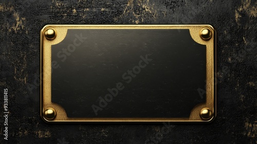 Elegant gold metal plaque with rivets, set against a black background, ideal for awards, nameplates, or prestigious brand design.