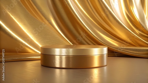 Elegant Gold Metallic Surface with Smooth Texture and Gradient - Luxury Product Display with Satin Fabric Background