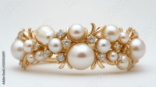 Elegant Gold Pearl Bracelet with Floral Design and Sparkling Diamonds