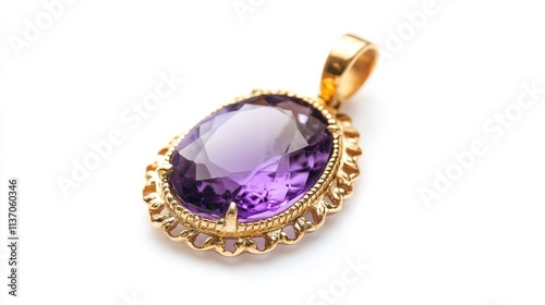 Elegant Gold Pendant with Large Purple Gemstone on White Background