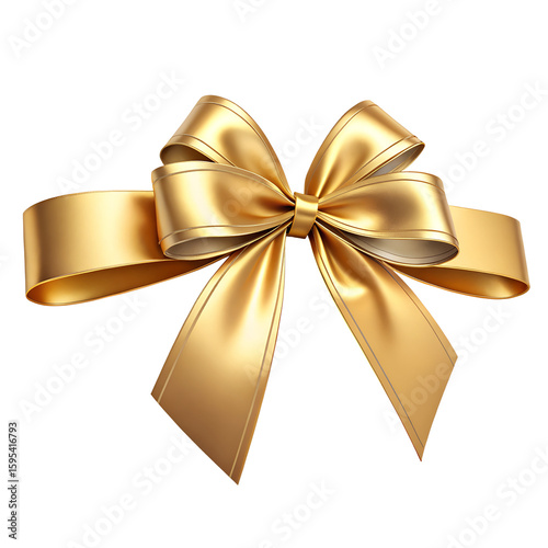 Elegant gold ribbon bow isolated on transparent background