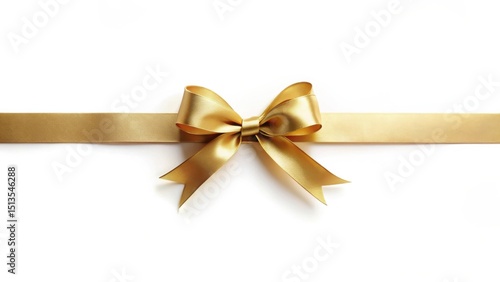 Elegant Gold Ribbon Bow on White Background, Perfect for Festive Designs and Elegant Presentations
